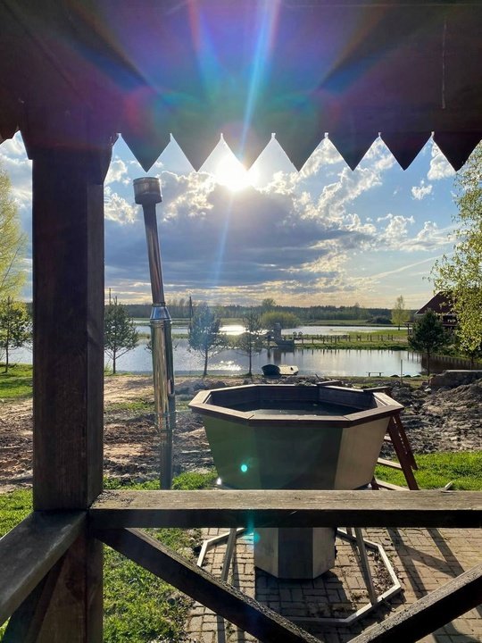 На территории усадьбы находится русская баня на дровах из сруба осины с комнатой отдыха. Просторная парная объемом 15м3 оборудована каменкой по-белому с натуральными камнями для мелкодисперсного пара. В бане комфортно могут разместиться до 6 человек.