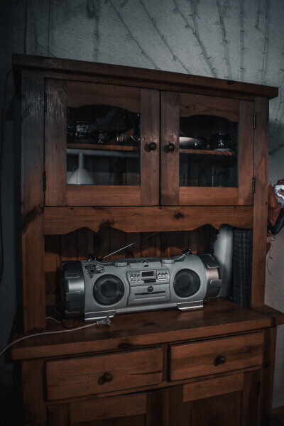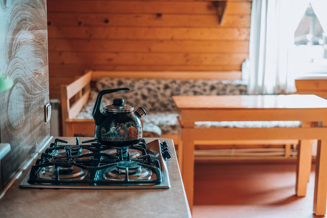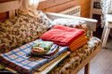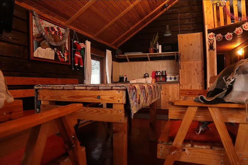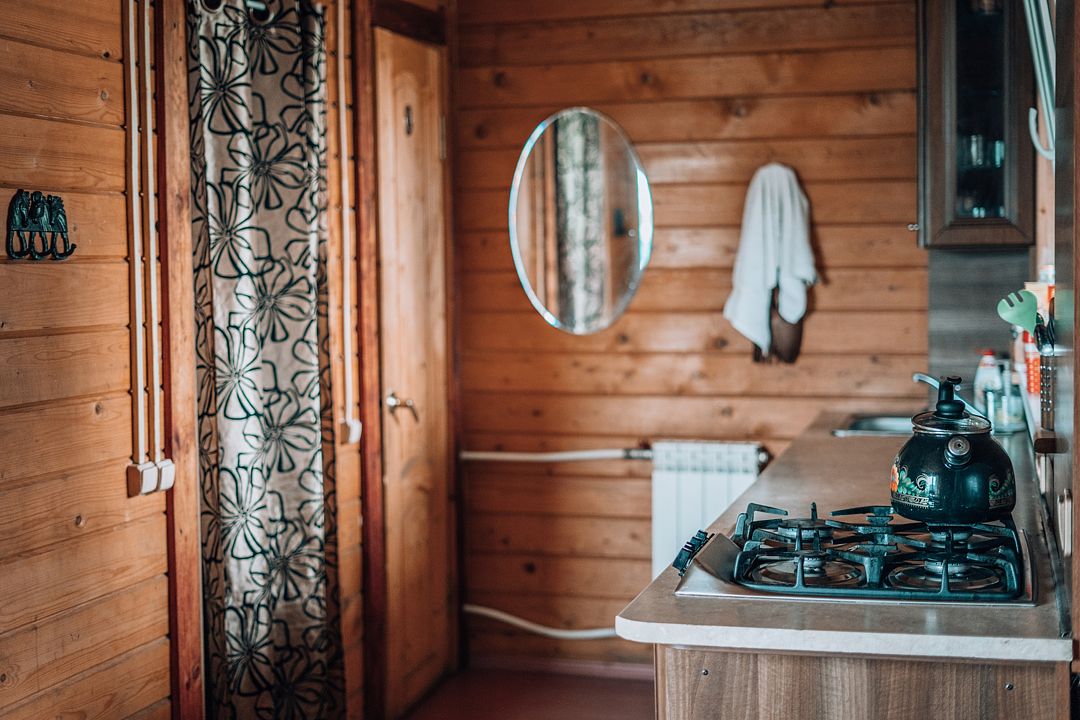 Камин, душ, туалет, кухня, холодильник, вся посуда, бельё, большие окна, рабочее пространство, дополнительные подушки и одеяла, 2-й свет, отопление, горячая и холодная вода.
