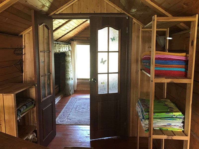 Просторная веранда, душ, туалет, кухня, холодильник, вся посуда, бельё, рабочее пространство.
