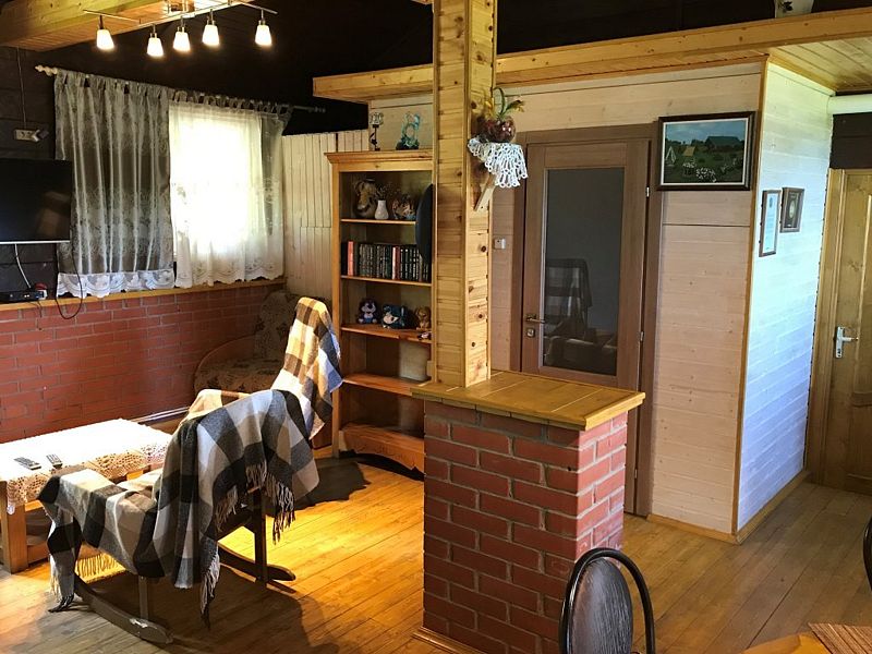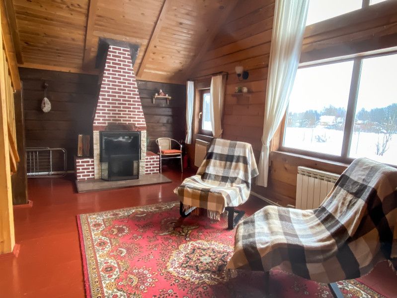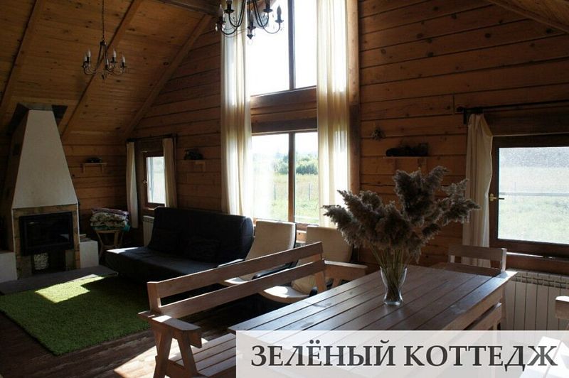 Уютный двухэтажный коттедж с камином, рассчитанный на размещение 12 человек. В доме: двуспальные и односпальные кровати, оборудованная кухня с газовой плитой, холодильником, микроволновой печью, чайником и набором посуды, телевизор, санузел с ванной, крытая терраса с зоной для барбекю.