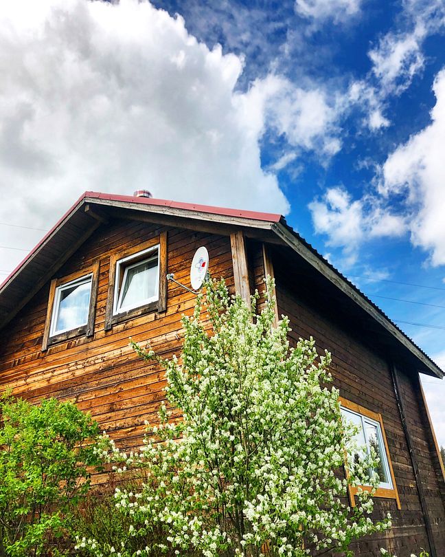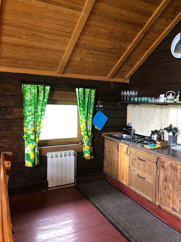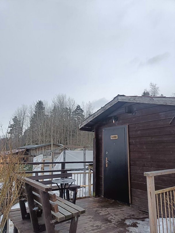 Дом с баней внутри и 2 спальнями, 8+2 мест. Баня оплачивается дополнительно.