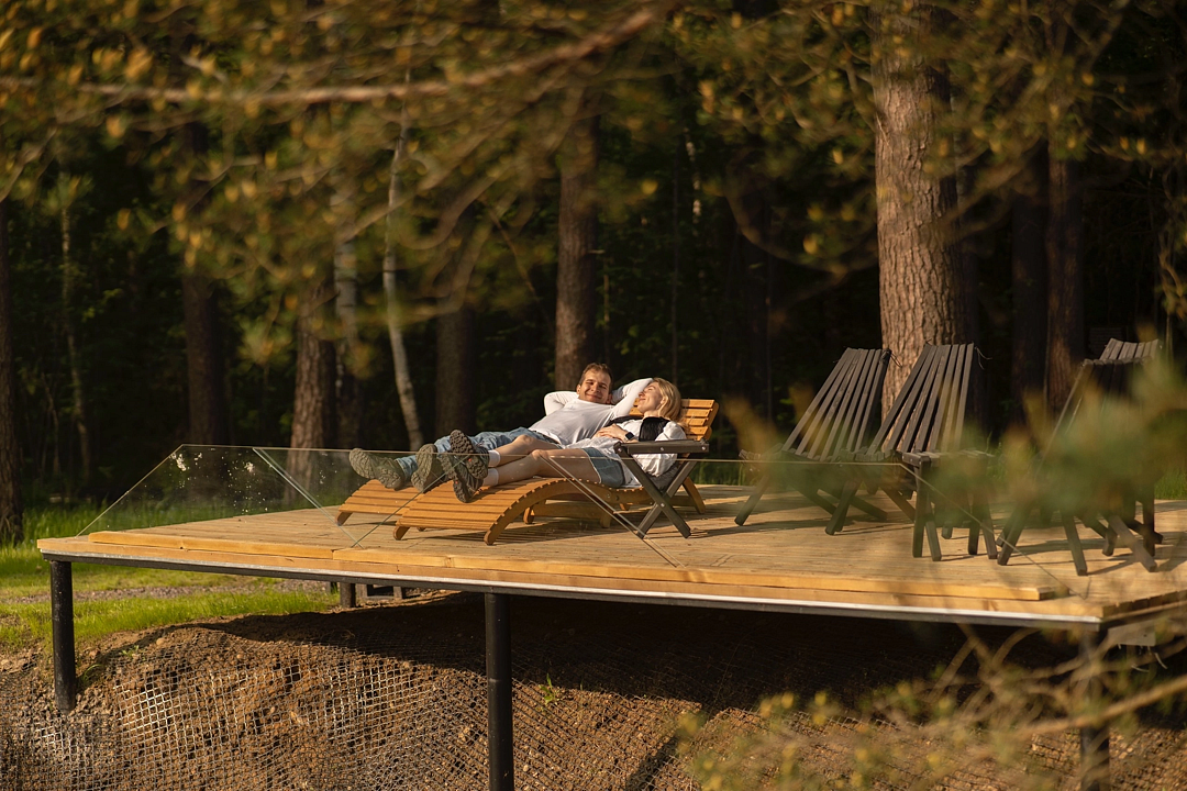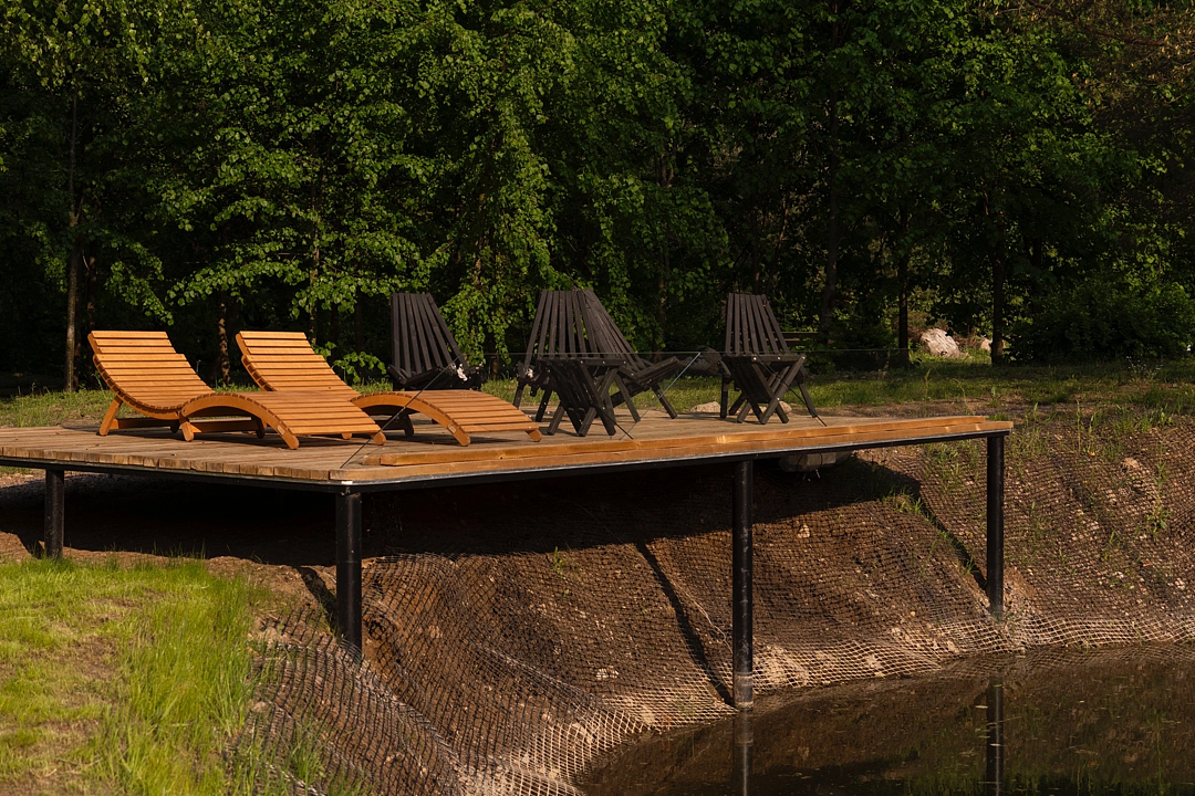 - терраса с шезлонгами прямо над озером;