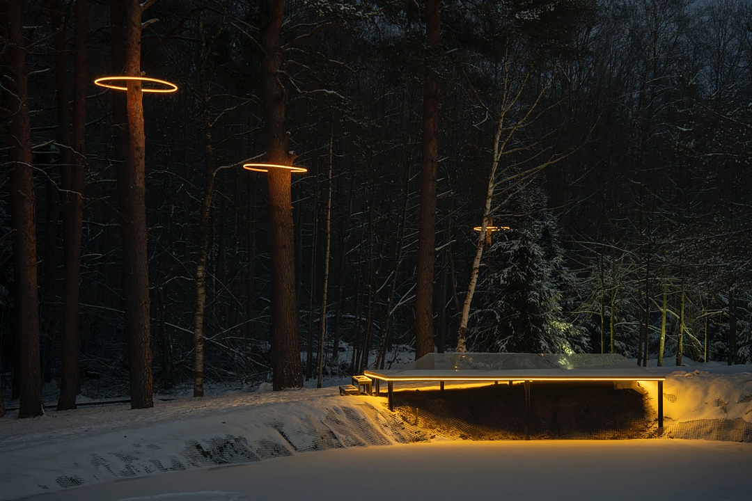 - лесная прогулочная зона с подсветкой;