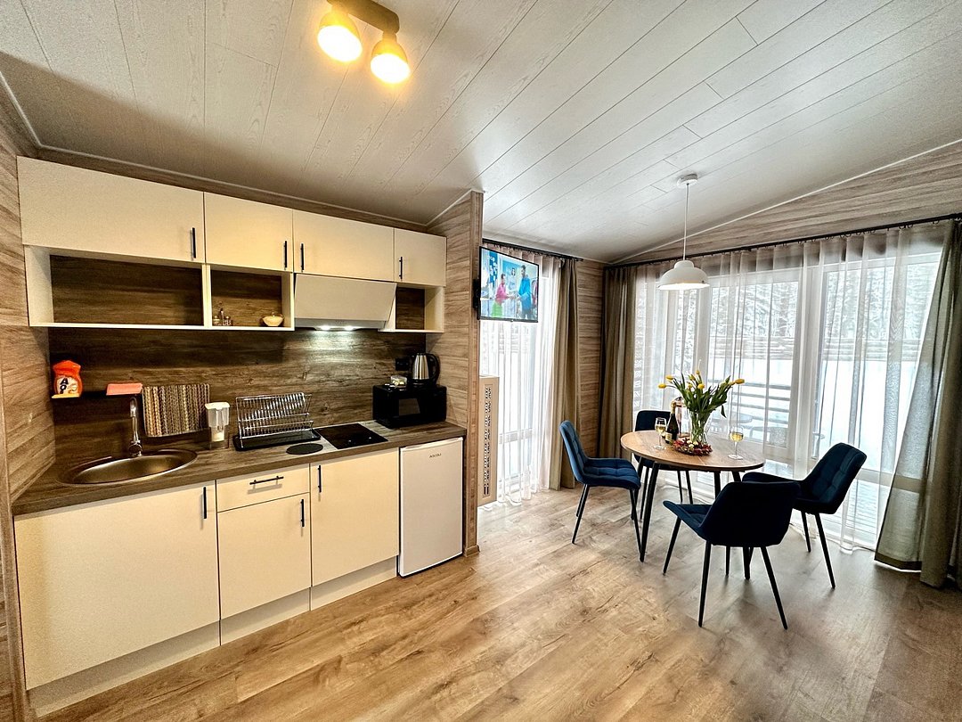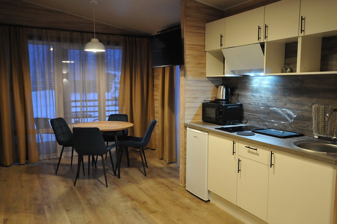 На территории хутора расположены восемь стильных барнхаусов с продуманной планировкой: каждая из современных деревянных усадеб оснащена комфортной двуспальной кроватью, полностью оборудованной кухней и раскладывающимся диваном для дополнительного размещения. Беседки с мангалами позволяют наслаждаться свежим воздухом и уютными вечерами под открытым небом, при этом дома расположены так, чтобы гости могли уединиться и насладиться тишиной природы.