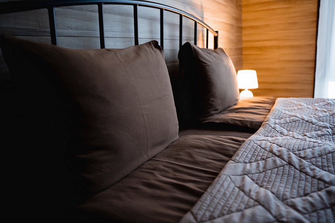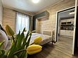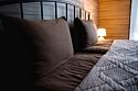 В спальне коттеджа Вас ждет комфортная двуспальная кровать, в ванной комнате — современная душевая кабина, раковина со смесителем, туалет. Кухня-столовая полностью оборудована необходимой техникой, посудой и телевизором. В гостиной поставлен раскладывающийся двуспальный диван-кровать.