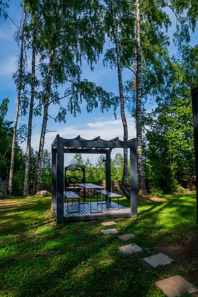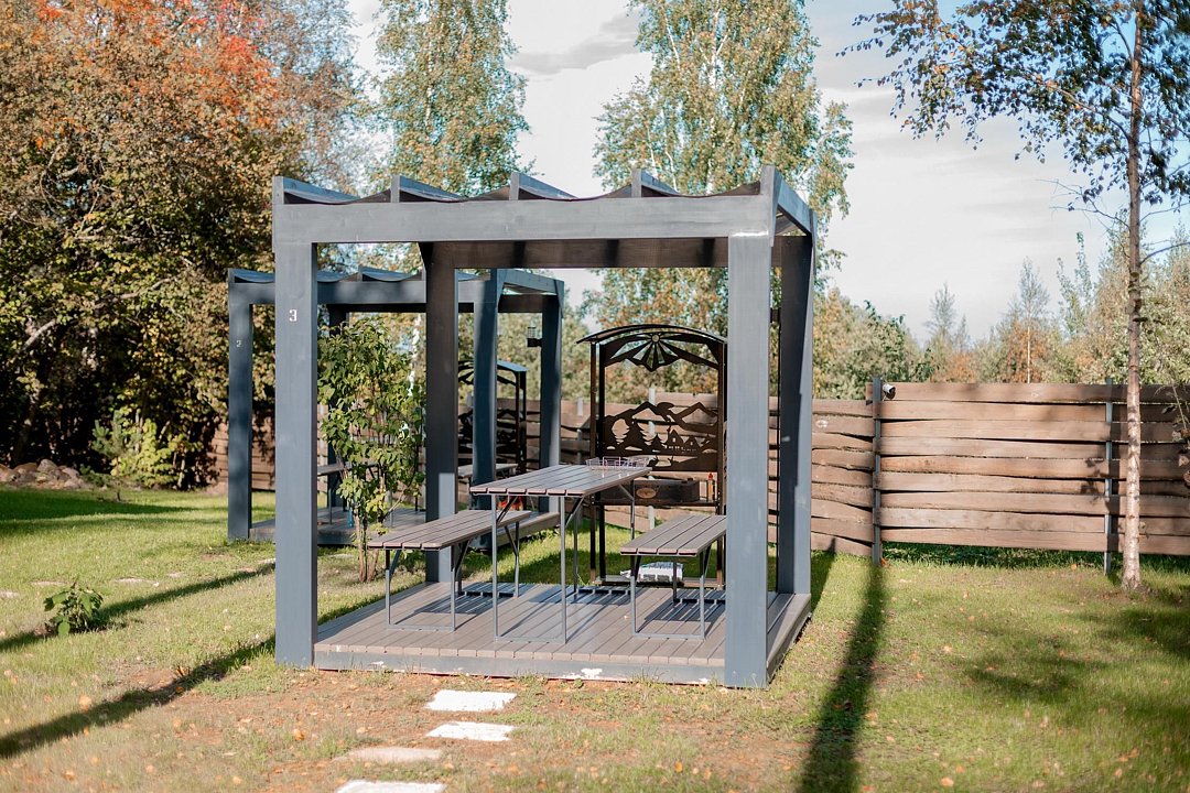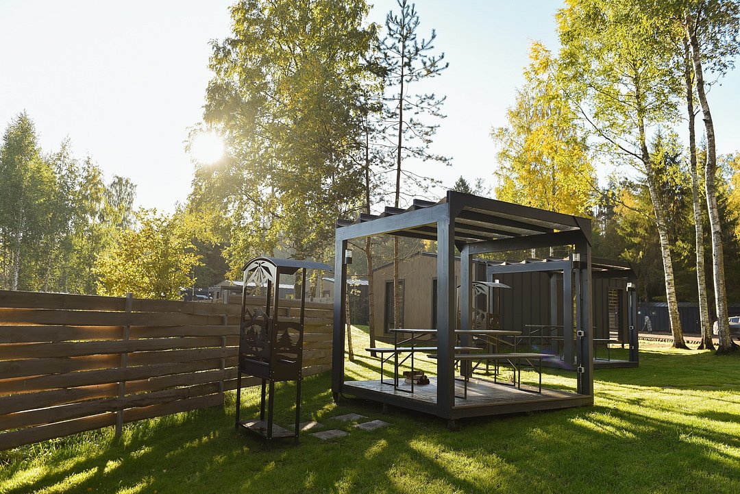 Возле каждого дома на территории «Хутор Троллей» расположена индивидуальная крытая беседка, предлагающая идеальные условия для отдыха на свежем воздухе в атмосфере спокойствия и расслабления.