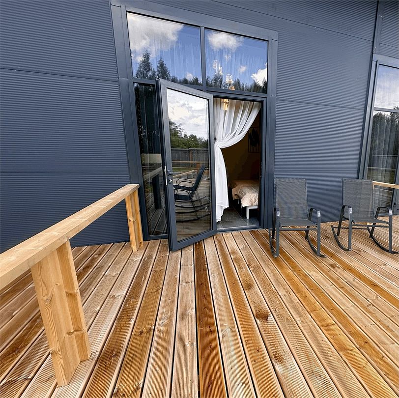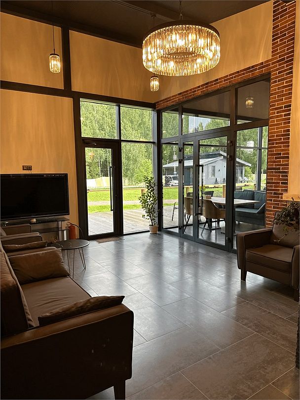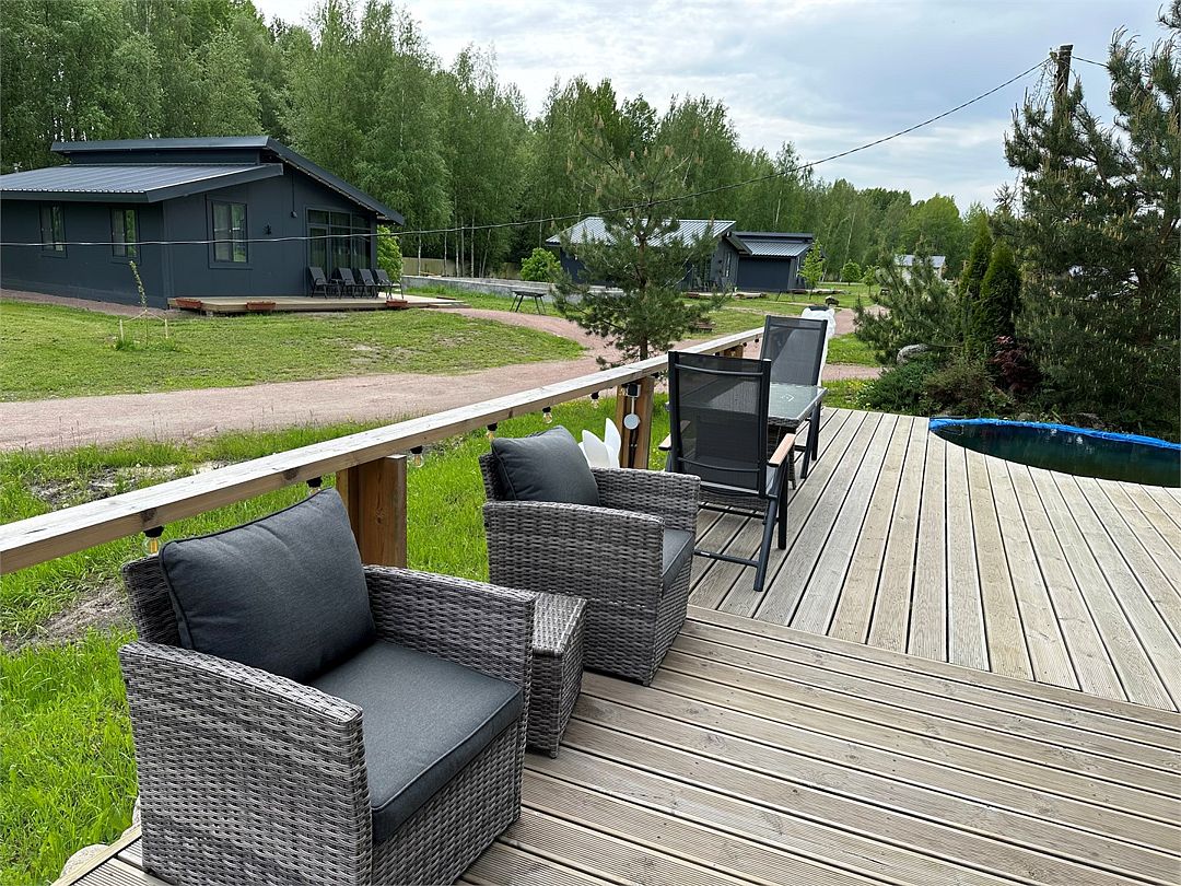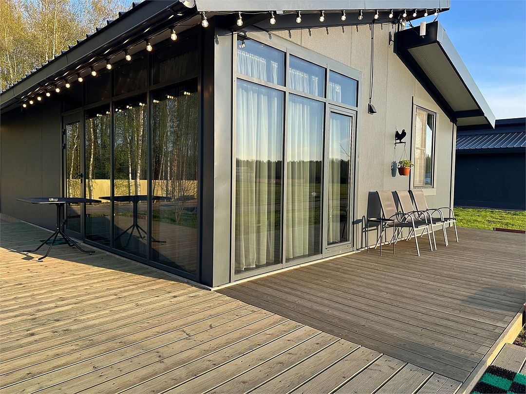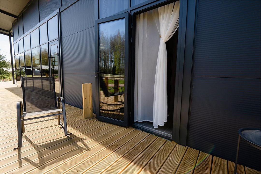 Современное оснащение домов соответствует европейскими стандартами. В каждом доме есть электрокамин, установлен теплый пол. Панорамные окна с выходом на собственную террасу, мангальную и костровую зону расширят пространство вашего отдыха. Отличный сервис и радушие персонала гостиницы, оставят самые положительные эмоции.