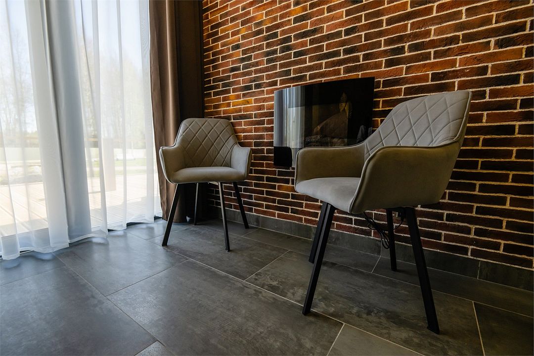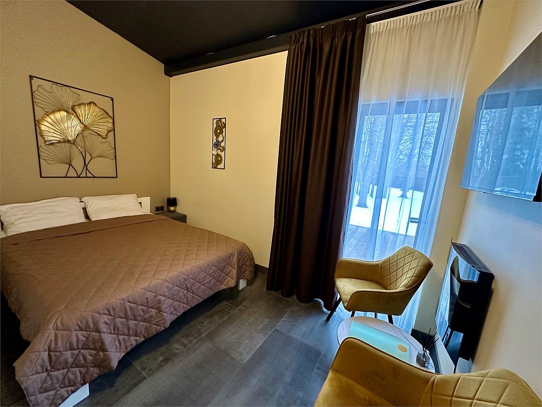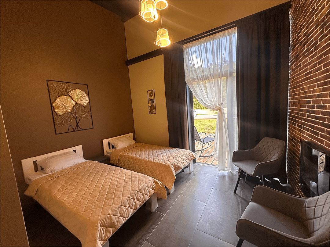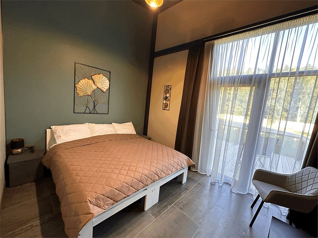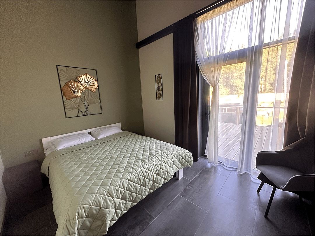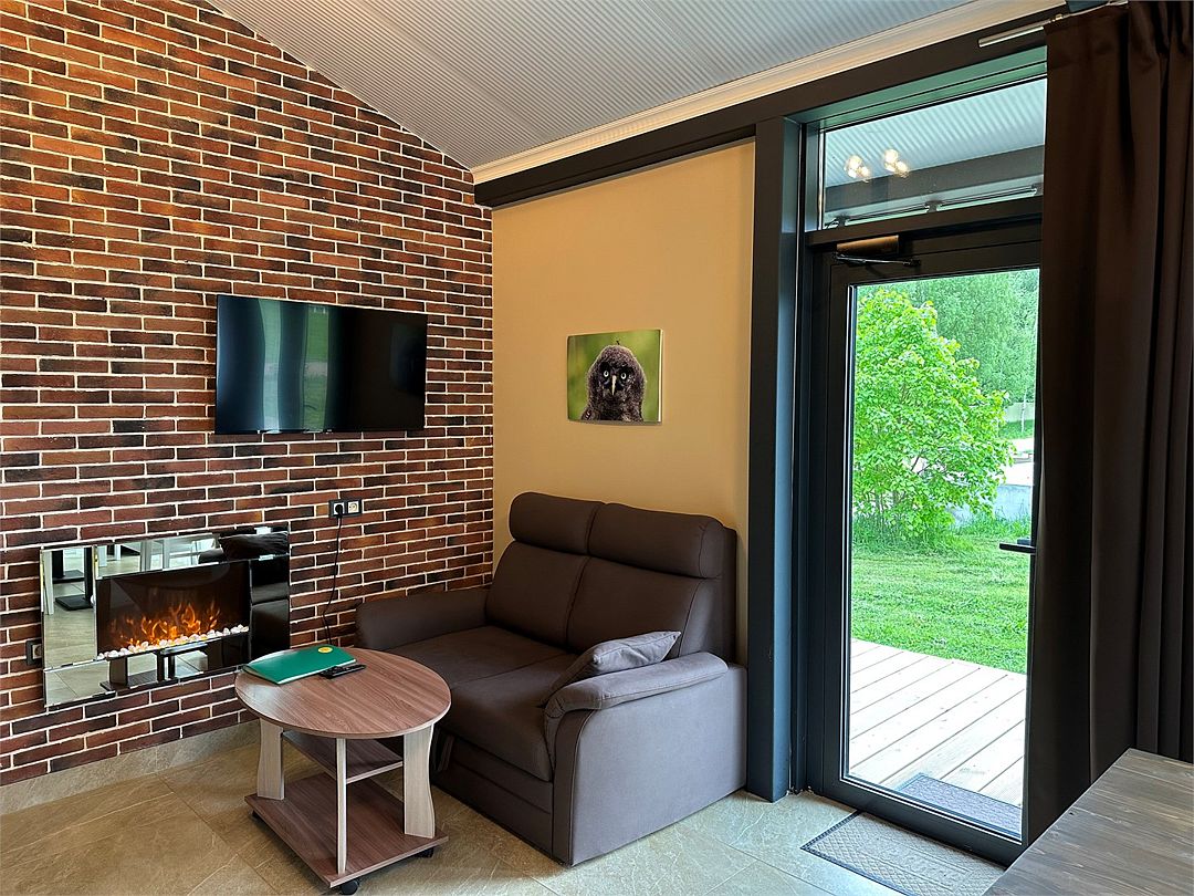Современное и стильное оснащение номеров соответствует европейскими стандартами. В каждом номере есть электрокамин, установлен теплый пол. Панорамные окна с выходом на собственную террасу расширят пространство вашего отдыха, а затемняющие шторы, позволят выспаться в комфорте и прохладе. На территории комплекса есть мангальные зоны. Отличный сервис и радушие персонала гостиницы, оставят самые положительные эмоции.