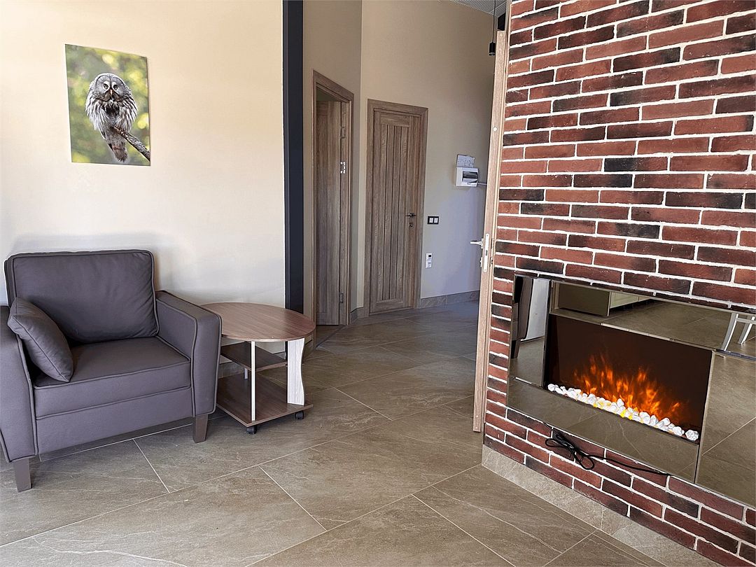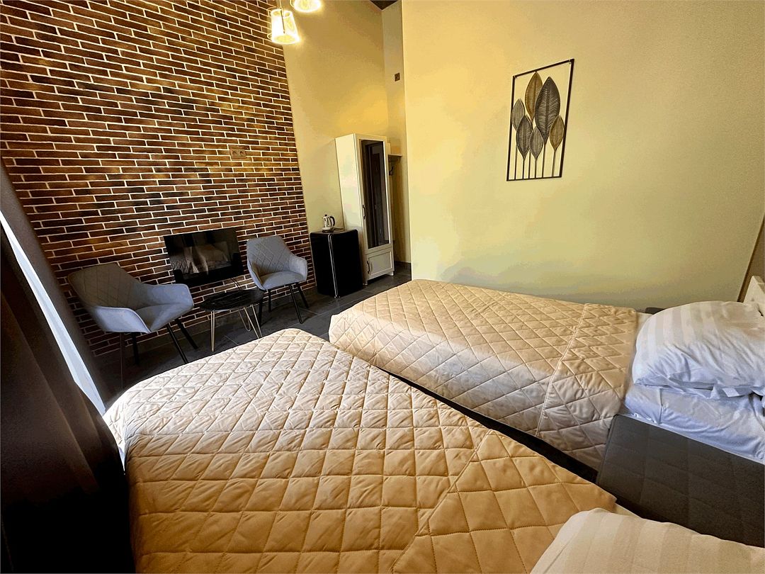 2 взрослых на основном местеВключен завтракНомер с каминомПодробнееНомер стандарт с электрокамином, расположен выходом на внутренний двор гостиницы, имеет собственную приватную террасу и мангальную зону.