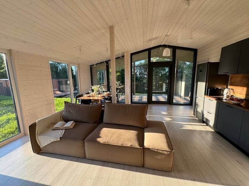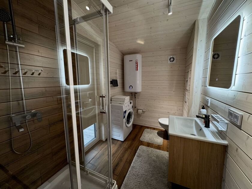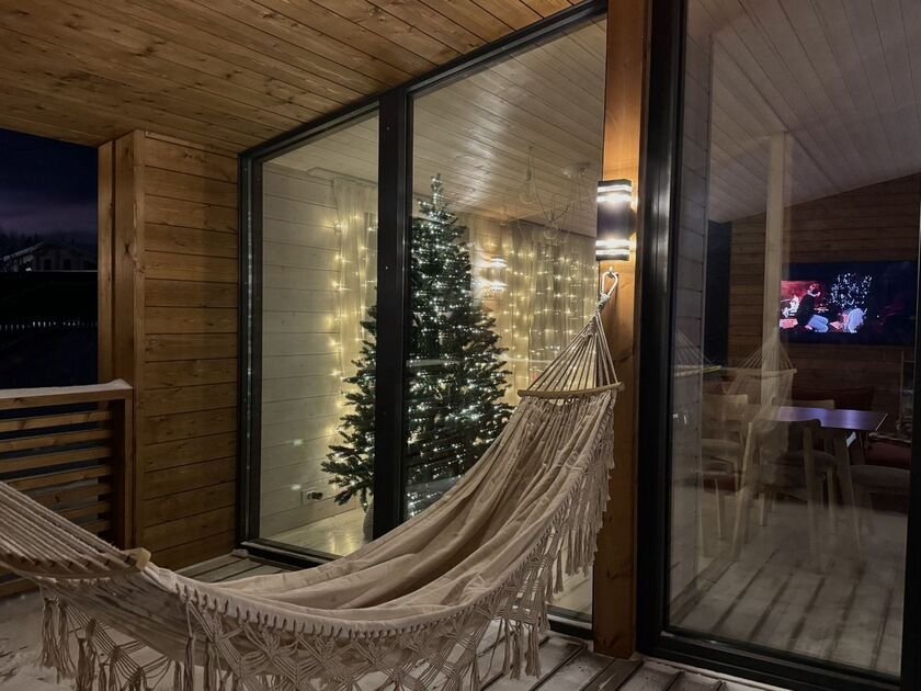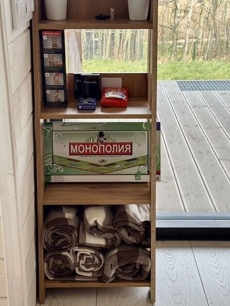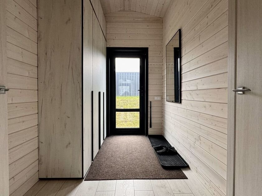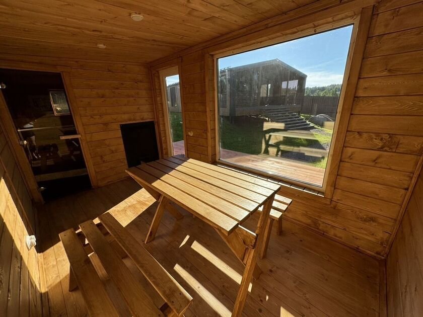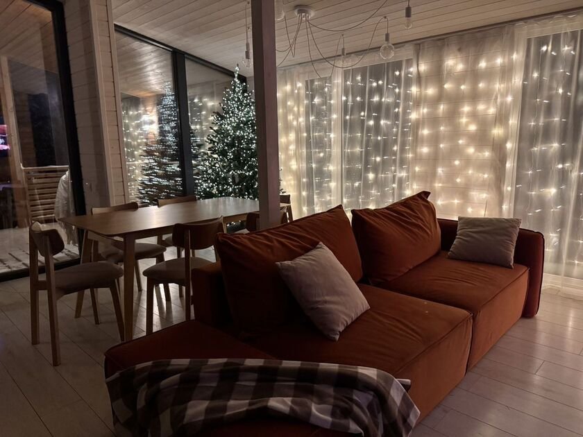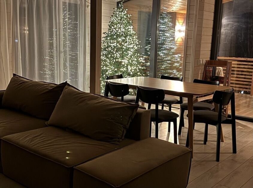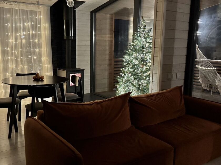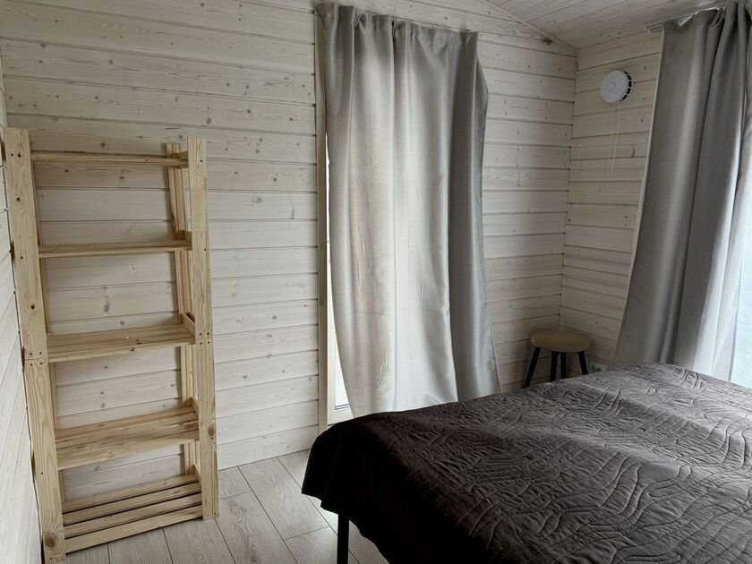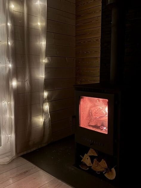 В прихожей шкаф. В кухне-гостиной стоит дровяной камин, диван, тв, стол, стулья, установлена встроенная кухня с техникой, холодильник, плита, посудомойка, стиральная машинка, фен, высокоскоростной wi-fi 100 мб, так же полный набор посуды и кухонными принадлежностями.