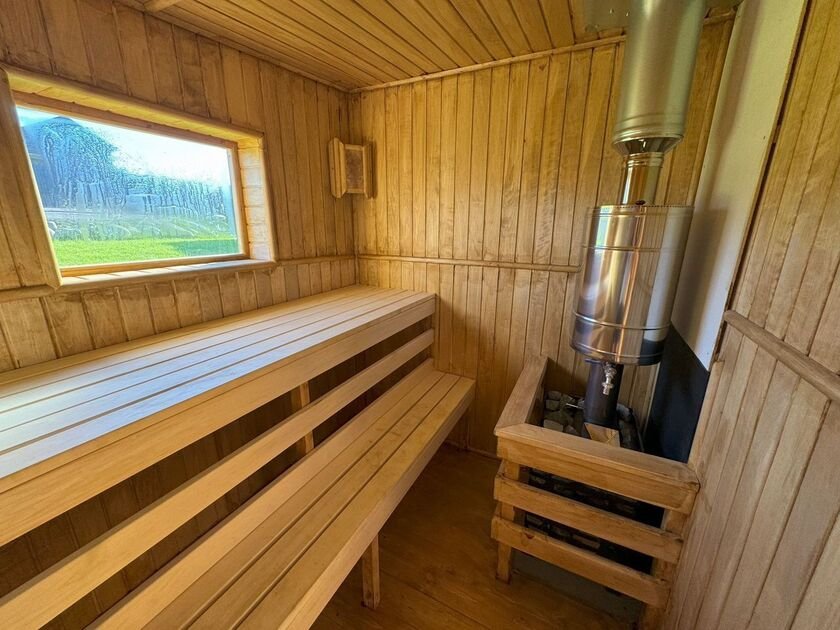 Баня на территории с дровяной печкой. За дополнительную плату 3000 ₽ оплата за день. Дрова покупаются отдельно, возле дома можно купить.