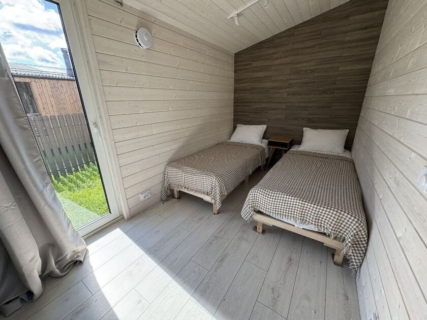 Дом полностью мебелирован всем необходимым для проживания: в каждой комнате кровати с ортопедическими матрасами, постельное белье, полотенца, тумбы.