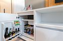 - на первом этаже коттеджа расположены современная кухня с премиальной техникой NEFF Liebherr, гостиная с камином, телевизором и обеденной зоной, терраса, сауна, сушильный шкаф;