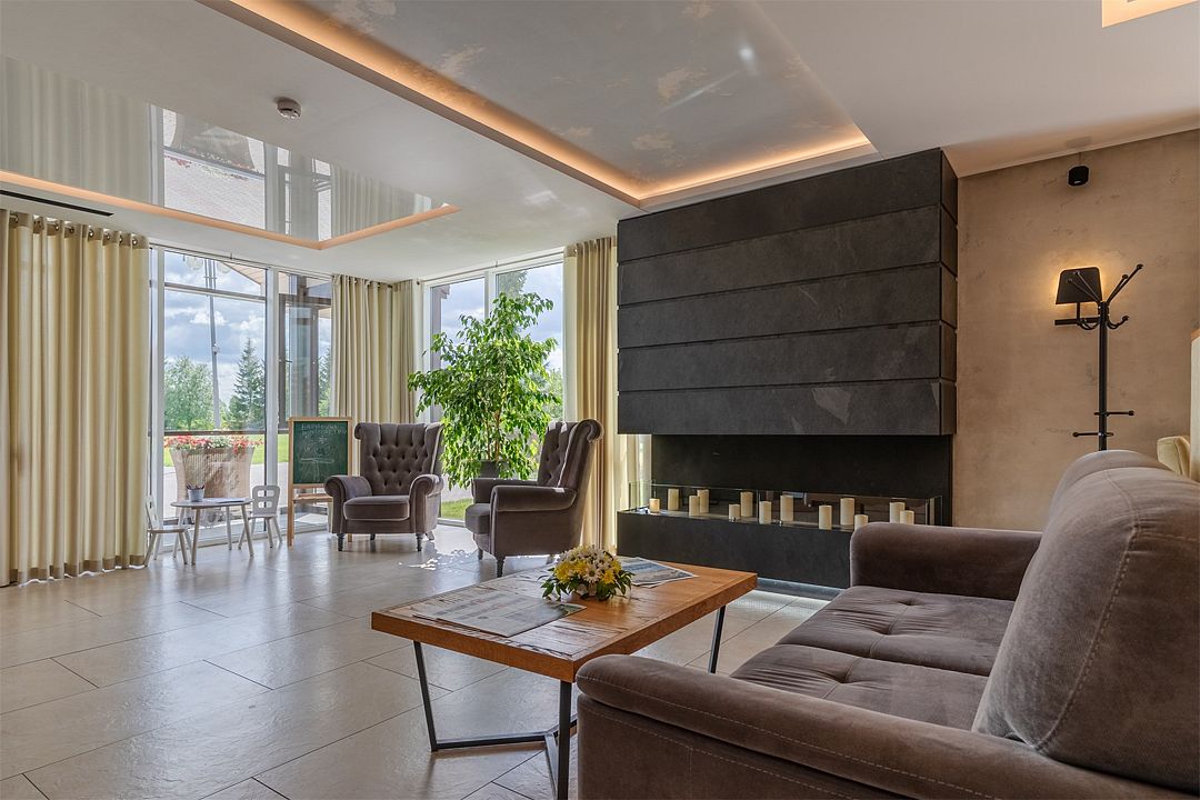 Расположенный на 130 гектарах, комплекс предлагает разнообразные варианты размещения: главный отель, комфортабельные коттеджи с каминами и апартаменты. Все номера оснащены современной мебелью и техникой.