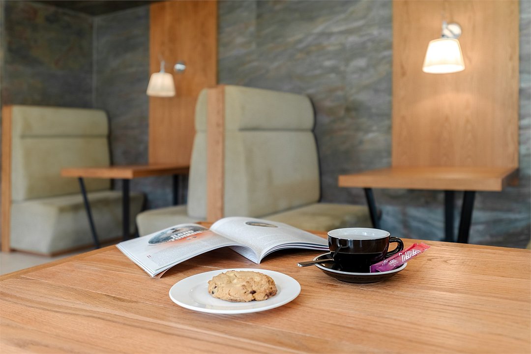 В холле есть зарядки для телефонов и красивый лобби-бар