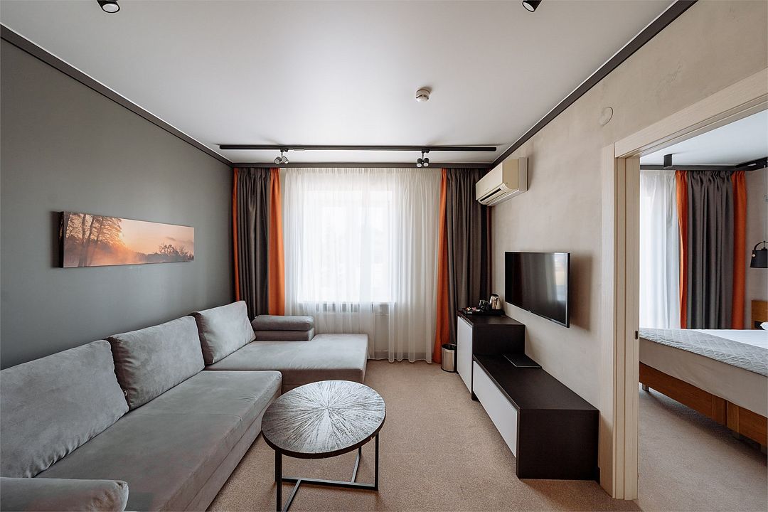 Двухкомнатный номер категории Люкс с одной двуспальной кроватью.