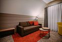 Номер также располагает комфортабельной зоной гостиной с диваном, и ЖК- телевизором*. Гостям предоставляются халаты и тапочки, минеральная вода при заезде. Сейф, платный мини-бар, светильник, комод, информационная карта, меню.