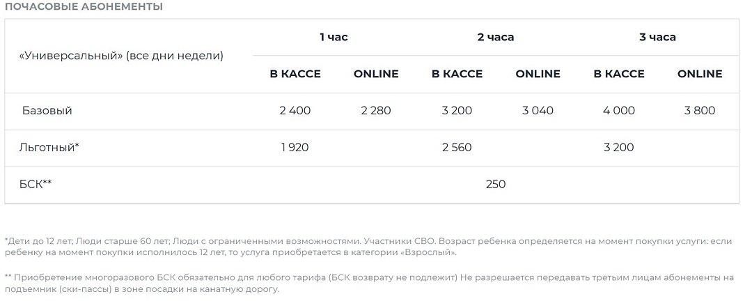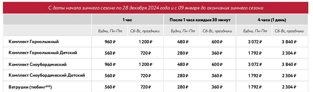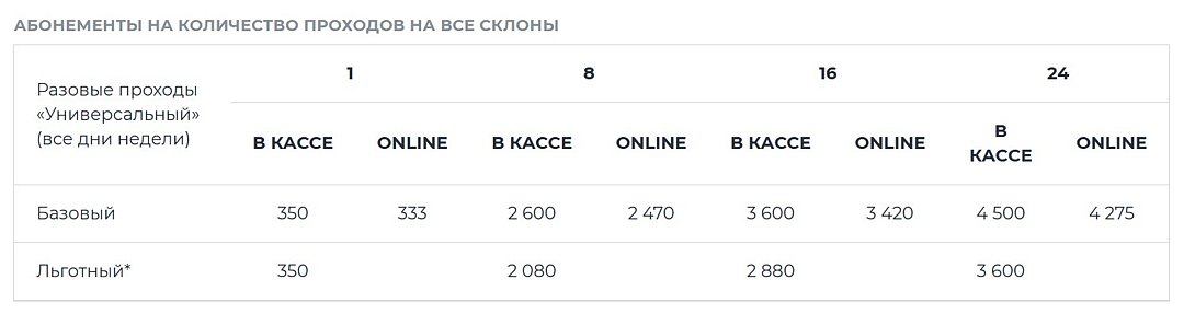- ски-пасс на время занятия на склонах;