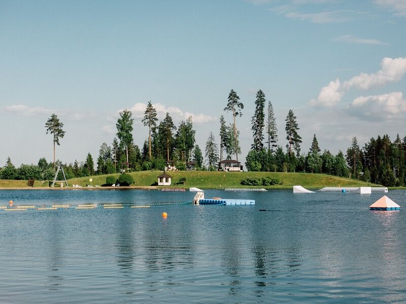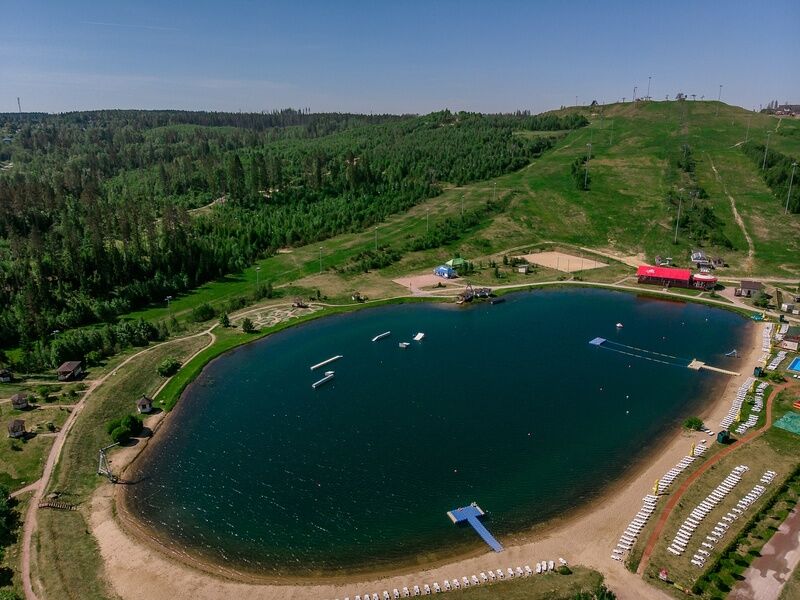 На озере есть лежаки, зонтики и бассейн, прокат катамаранов и различные водные виды спорта