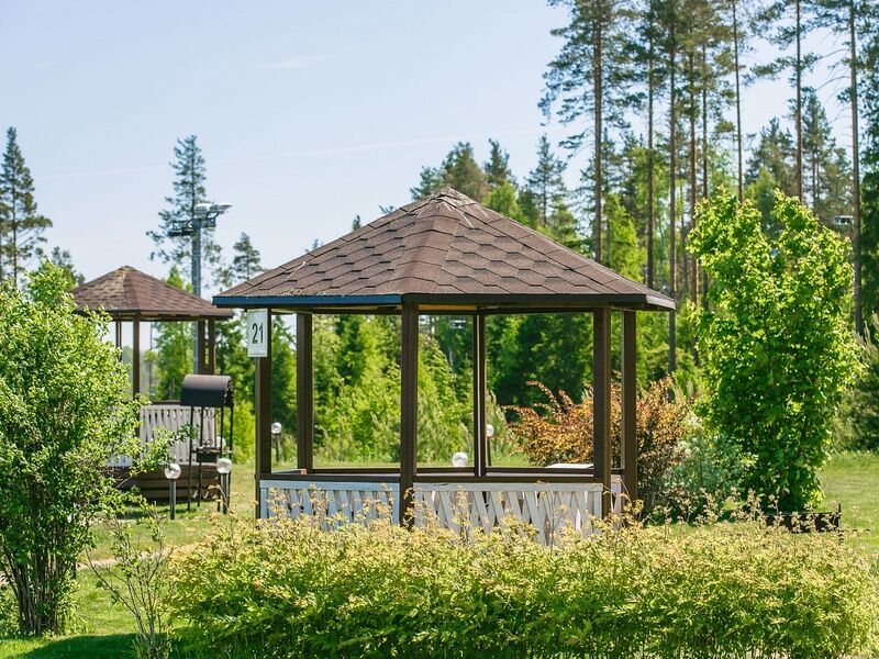 Банный домик вместимостью до 15 человек (стандарт — 10 человек) из натурального дерева с ароматными вениками обеспечат комфортную пропарку и повышение иммунитета. Широкая палитра запахов, легкий воздух и атмосфера настоящей бани гарантируют хорошее настроение на весь отдых.