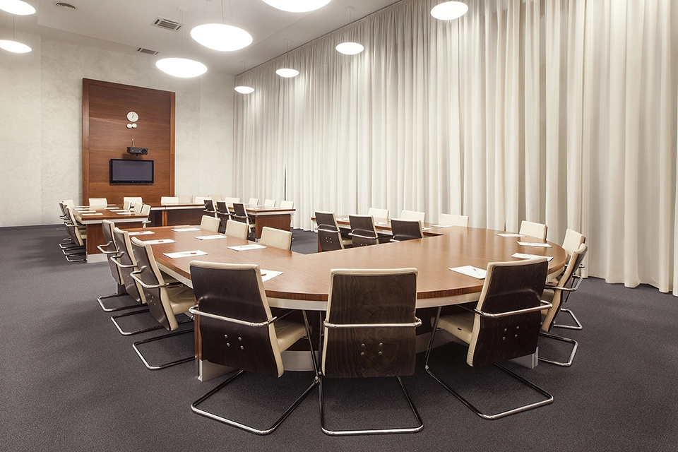 Серебряный/ Бронзовый залы имеют небольшую площадь и вместимость до 20 человек. Отлично подходит для видеоконференций. Комфорт и функциональность этих залов полностью соответствуют самым высоким стандартам и отлично подойдут для собраний ТОП-менеджмента компаний.