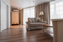 В номере 2 комнаты: гостиная и спальня. Просторная гостиная с панорамными окнами, раскладывающимся диваном, телевизором. Спальня с большой двухместный кроватью. В номере собственная ванная комната и кондиционер. Отлично подойдет для семейных пар с детьми.