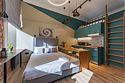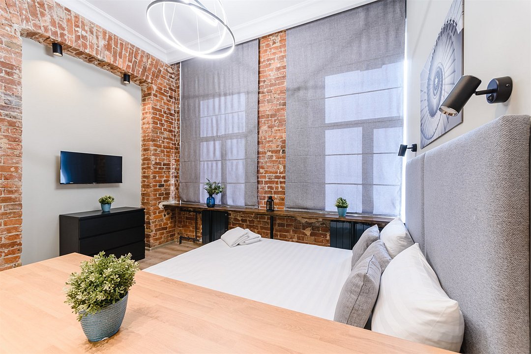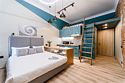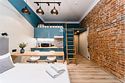 Мы рады предложить Вам семейные апартаменты-студио площадью 23м² со стильным дизайном с элементами Loft, рассчитанные на проживание до 4-х гостей включительно. Апартаменты включают в себя: - двуспальную кровать с удобным матрасом и просторное спальное место на втором ярусе; - кухонную зону с плитой, микроволновой печью, чайником и всей необходимой посудой; - высокоскоростной интернет и Smart-TV; - личные удобства с душем, фен, набор полотенец для каждого гостя. В общей зоне для Вас кулер с питьевой водой, стиральная машина, утюг и гладильные принадлежности.Услуги и удобства
