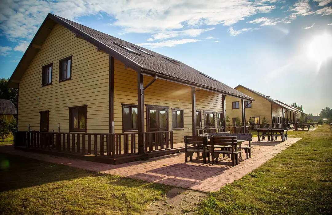 Рядом с коттеджами располагаются зоны для отдыха с принадлежностями для барбекю. Вы сможете расслабиться в русской бане на дровах, поиграть в русский бильярд или настольный теннис, а также насладиться временем в панорамной крытой беседке с центральным мангалом.