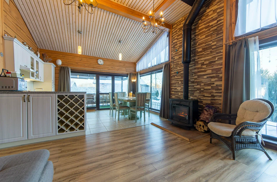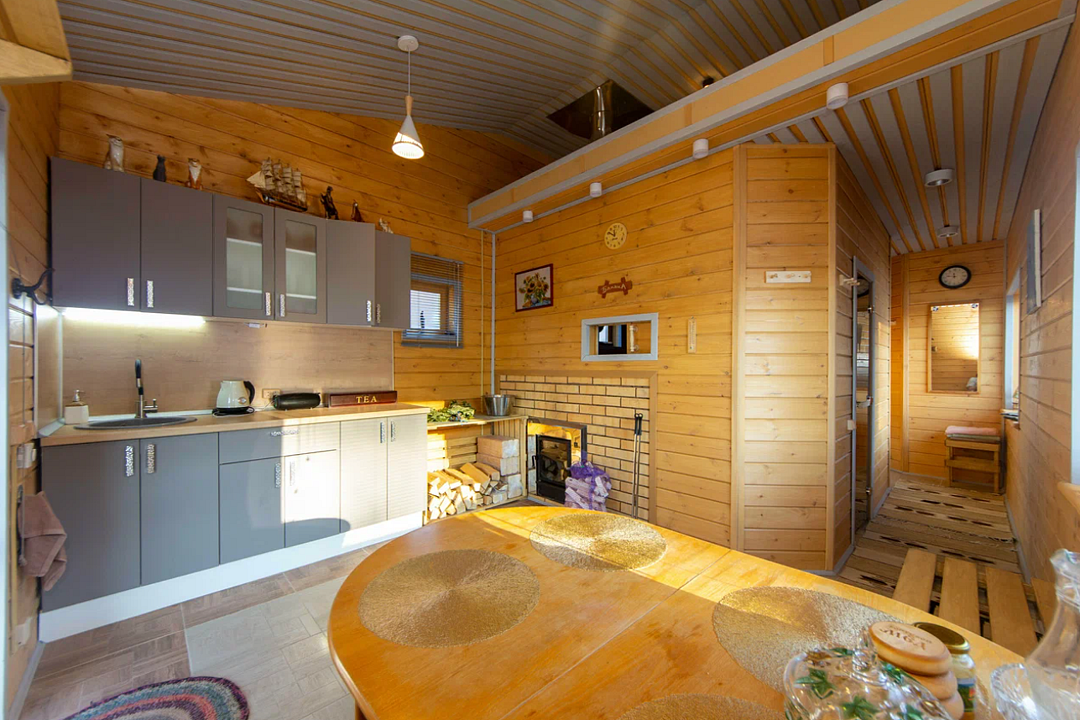 Оптимальное место для семьи отдохнуть за городом, погреться у камина, попариться с вениками в бане, окунуться в водоеме, расслабиться в финской купели и приготовить еду на огне.
