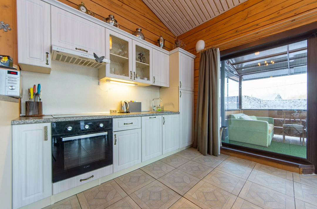 - вся необходимая посуда для сервировки стола и приготовления еды: бокалы для вина и шампанского, керамическая плита, духовка, капсульная кофемашина неспрессо, микроволновка; сахар, соль, чай, специи, пакеты для мусора, тряпочки, губки, бумажные полотенца и другие необходимые на кухне мелочи;