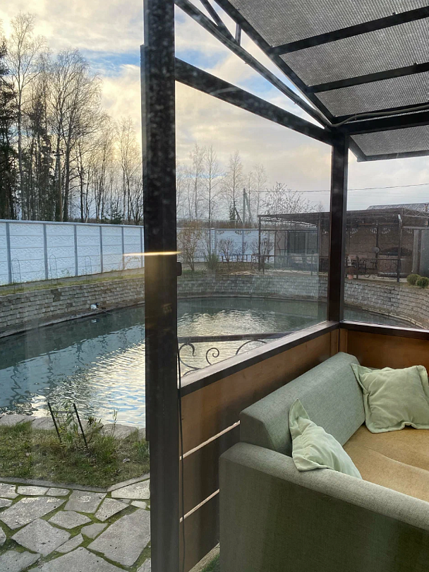 Тип бассейна: открытый бассейнРядом с бассейном: шезлонгиРазмеры: 20 x 16 мПлощадь: 320 м²Глубина: 250 смПериод работы: летний сезонНа территории водоем 20х16м с проточной водой в 20 м от бани, можно окунуться или моржевать. Зимой t воды в водоеме + 4С. Летом комфортно + 20-25С, можно купаться, глубина водоема до 2,5м.
