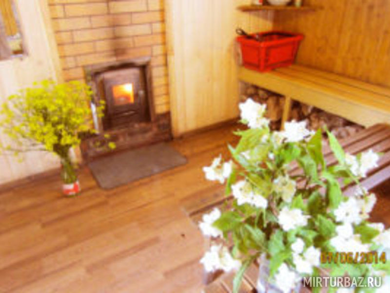 Баня топится на дровах, печь – каменка, в комнате отдыха — камин. В просторной парилке хорошо вдвоем или в компании до 5 человек.