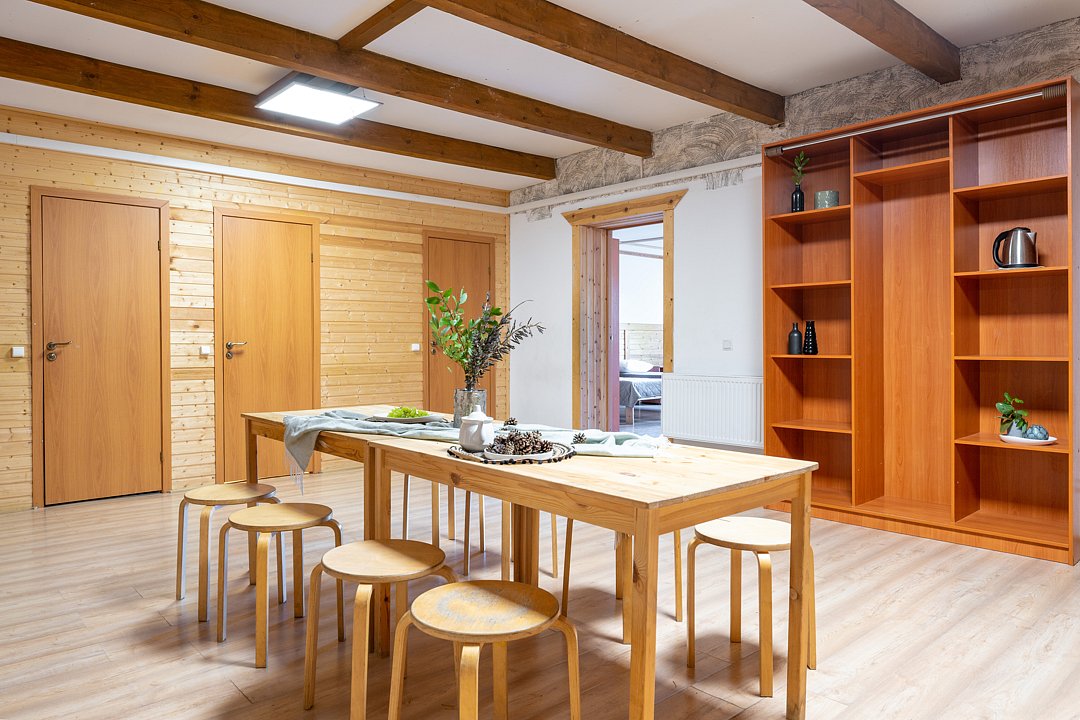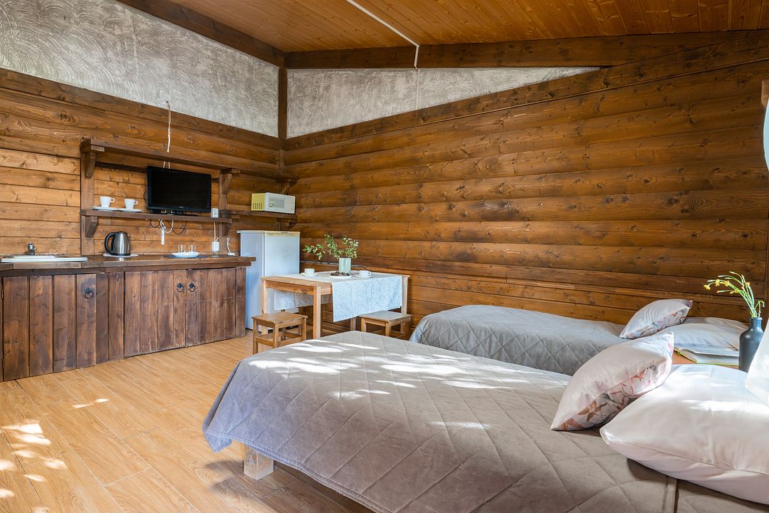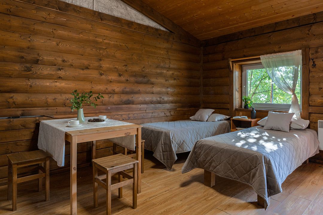 Семь уютных домиков расположены посреди живописной природы. Каждый может подобрать наилучший вариант размещения. К примеру, небольшие группы бронируют четырехместные домики с возможностью заселения еще одного гостя. В каждом домике две спальни, ванная комната, просторная гостиная и оборудованная всем необходимым кухня. Современная мебель, бытовая техника и электроника делают проживание комфортным. Внимание к деталям и особый подход к каждому гостю делают домики идеальным местом для отдыха и проживания.