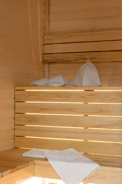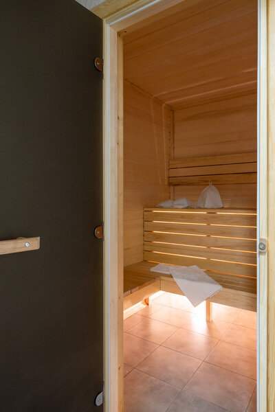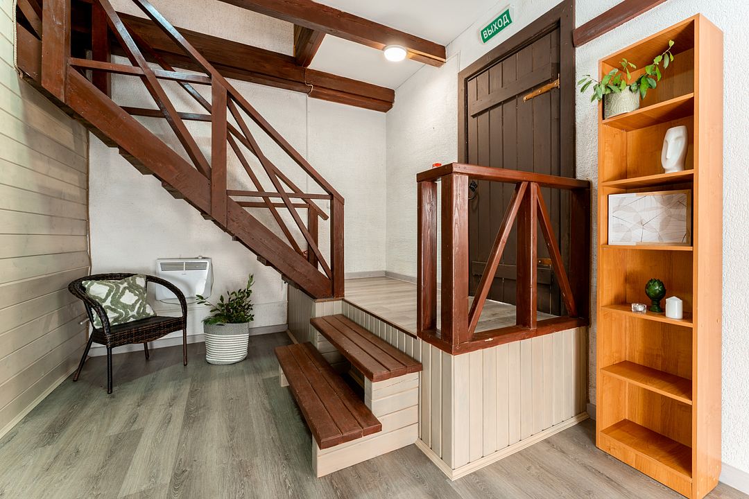 Трехэтажный таунхаус с сауной, рядом с номером установлен мангал и столик. На первом этаже располагается финская сауна, место для отдыха, санузел (душевая кабина, раковина, туалет), выход на придворовую территорию с мангалом. На втором этаже оборудованная кухня (холодильник, чайник, набор посуды), обеденная зона, 1 дополнительное место, выход на балкон. На 3-м этаже 2 спальни, выход на балкон.
