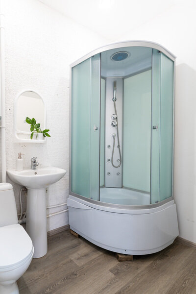 Номер оснащен электричеством, горячим и холодным водоснабжением, системой отопления с возможностью регулировки температуры.