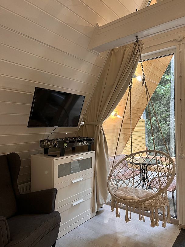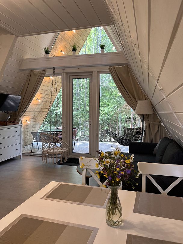 Уютные гостевые домики находятся в поселке Хиттолоярви, всего в 40 км от Санкт-Петербурга. Приблизительно в 600 м от домиков расположено живописное озеро Мадалаярви. Восемь А-фреймов, каждый из которых рассчитан на проживание от 2 до 4 человек, имеют свою террасу с мангалом и зоной отдыха. В каждом из домов имеется кухня, оборудованная бытовой техникой и набором посуды, телевизор, Wi-Fi, панорамные окна с видом на лес, современный санузел с душем.