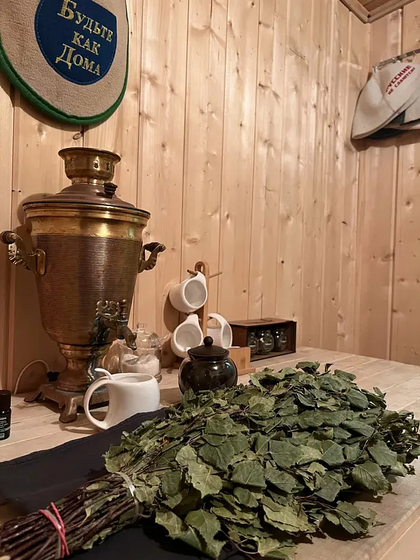 Веник, шапочки, чистые простыни, арома-масла и чай входят в стоимость.