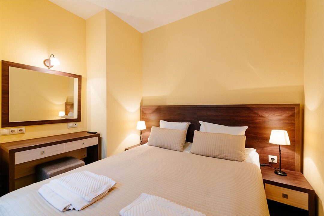 Двухместный номер комфорт 2 кровати по 80 см Телевизор 32 д. с возможностью подключения по USB и HDMI Шкаф Тумбочки Стол Холодильник Туалетные принадлежности Полотенца Выход на балконУслуги и удобства
