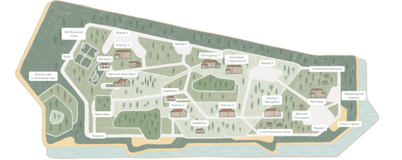 В комплекс отдыха можно приехать только с собаками (другие виды животных не допускаются).
