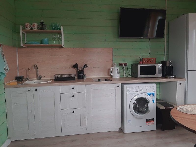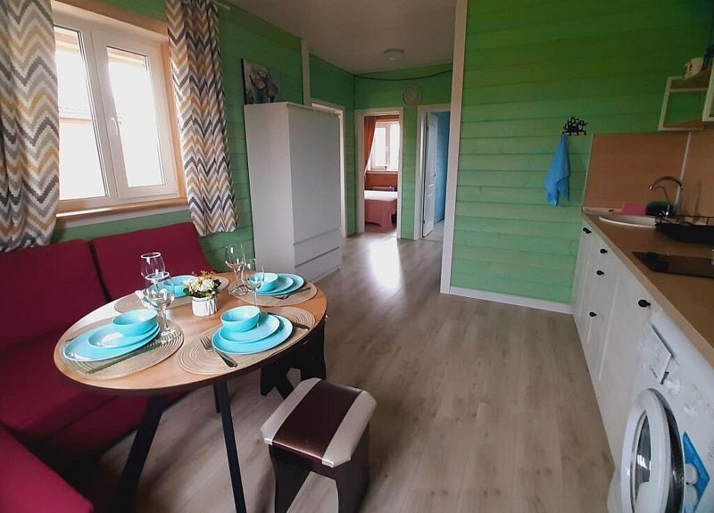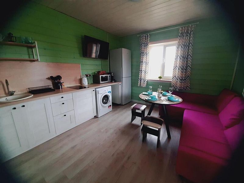 Дом располагает кухней-гостиной, где можно собраться за обеденным столом или отдохнуть на комфортабельном угловом диване-кровати, а также спальными комнатами с комфортабельными кроватями. К вашим услугам безлимитный Wi-Fi, фильтр с чистой питьевой водой, стиральная машина, душевая кабина и фен.