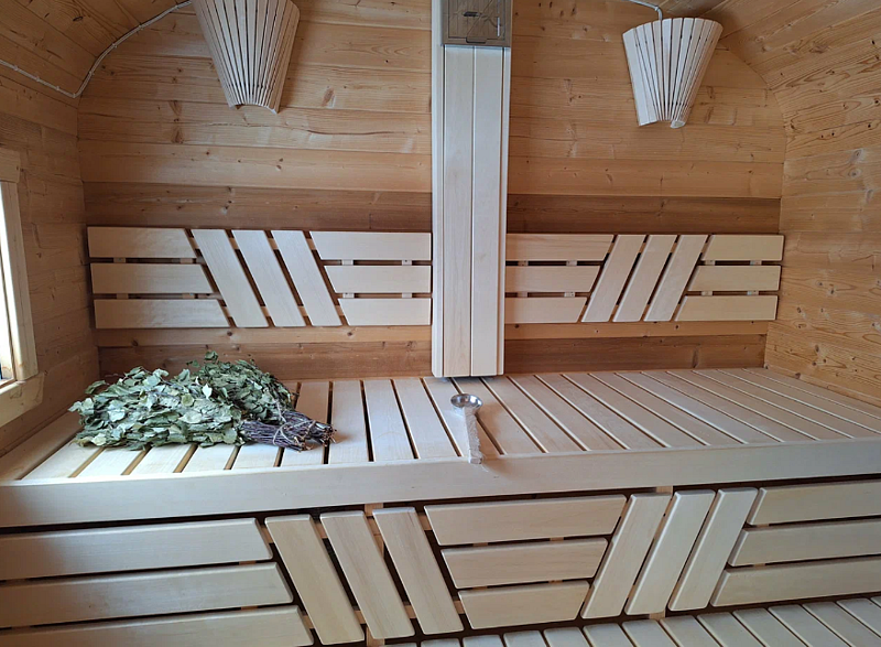 В комплект входят халаты, полотенца, шапочки, тапочки, ковш и запарник для пара, дубовые и березовые веники, терраса с уличной мебелью, лежаки для принятия солнечных ванн в процессе парения, березовые дрова, чай/кофе/сахар.