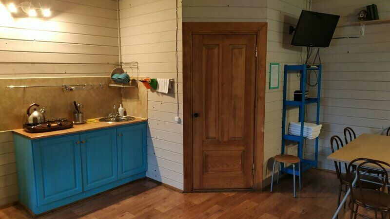 - Кухня (плита, холодильник, раковина, полный комплект посуды)