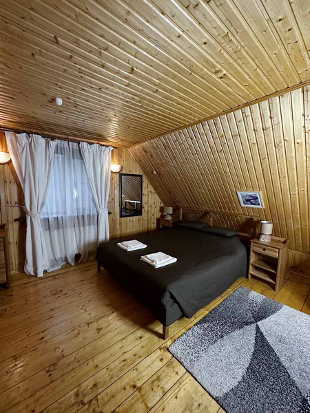 Путешествие с семьейВырваться из городской суеты!Решили семьей отдохнуть от шума города - замечательное место! Час по трассе и тишина - уютная территория, вокруг симпатичные домики, лесок и озерцо. Зимой - склон в 10 минутах пешком. Дома современные - на первом этаже привычная кухня, чистая, удобная ванна и столовая; второй этаж - спальни. Мангал и все для шашлыка предоставляют. И бонусом - охраняют ваш покой маламуты и смелый кот )