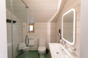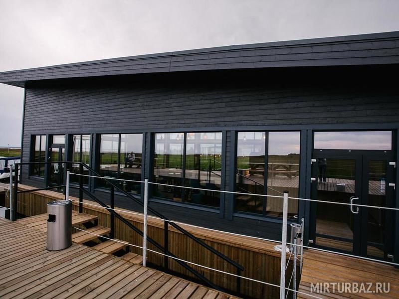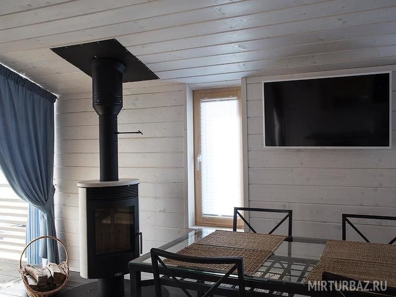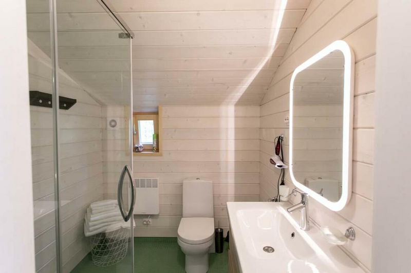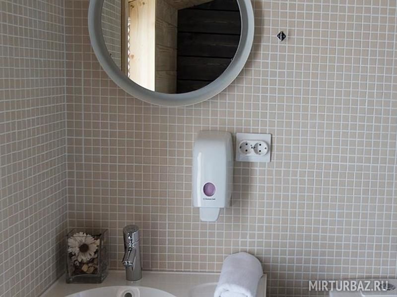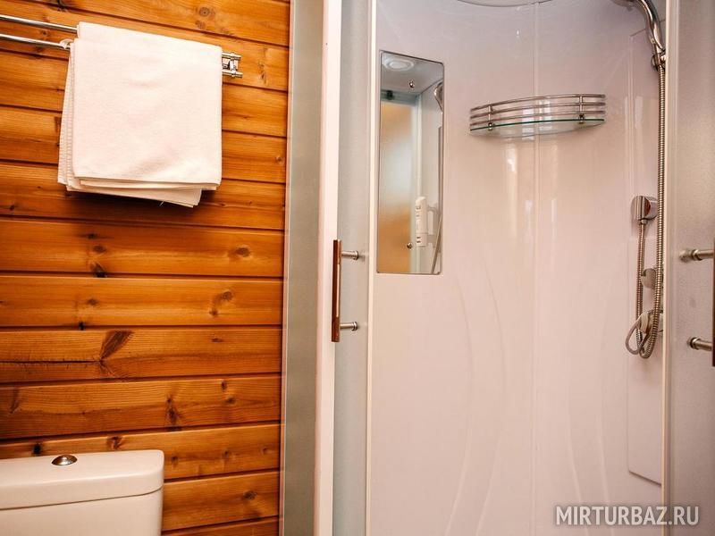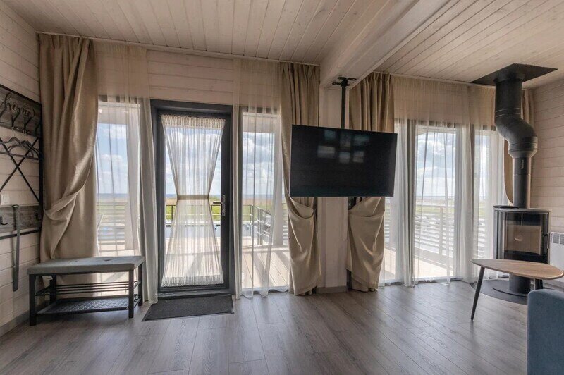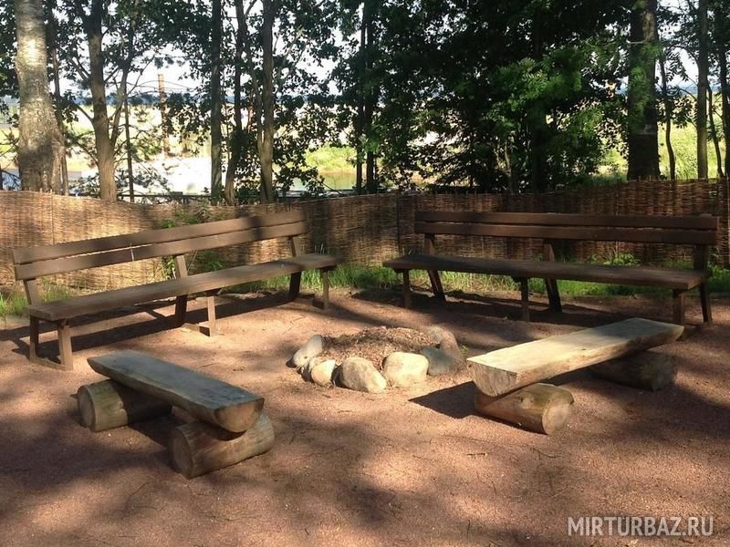 Каждый номер имеет отдельный вход и крытую террасу перед ним. На ней можно с комфортном разместиться в шезлонгах и выпить утренний кофе, наблюдая гладь Ладожского озера.