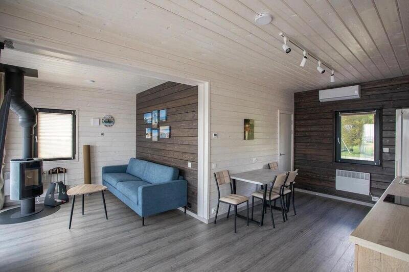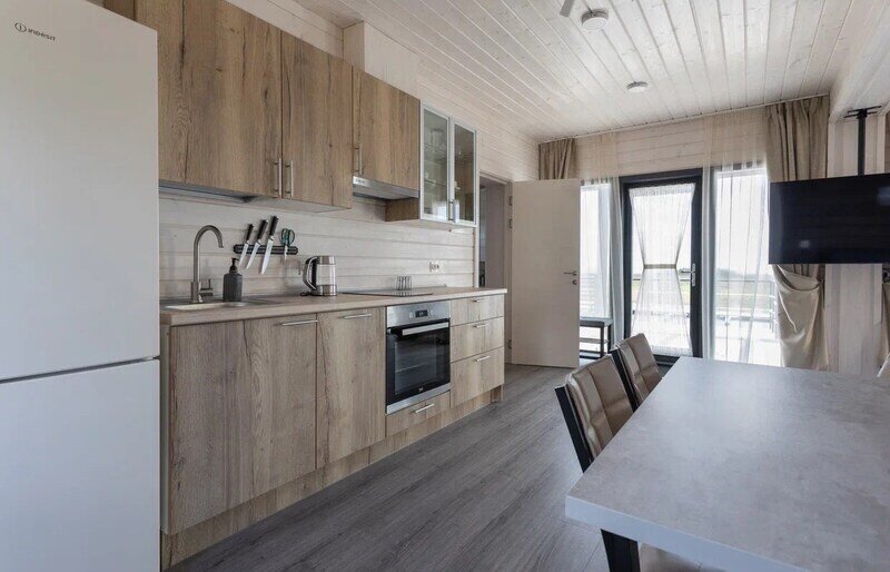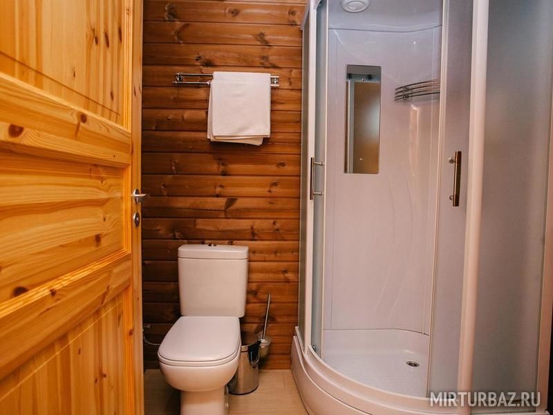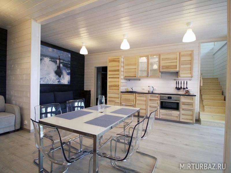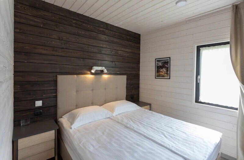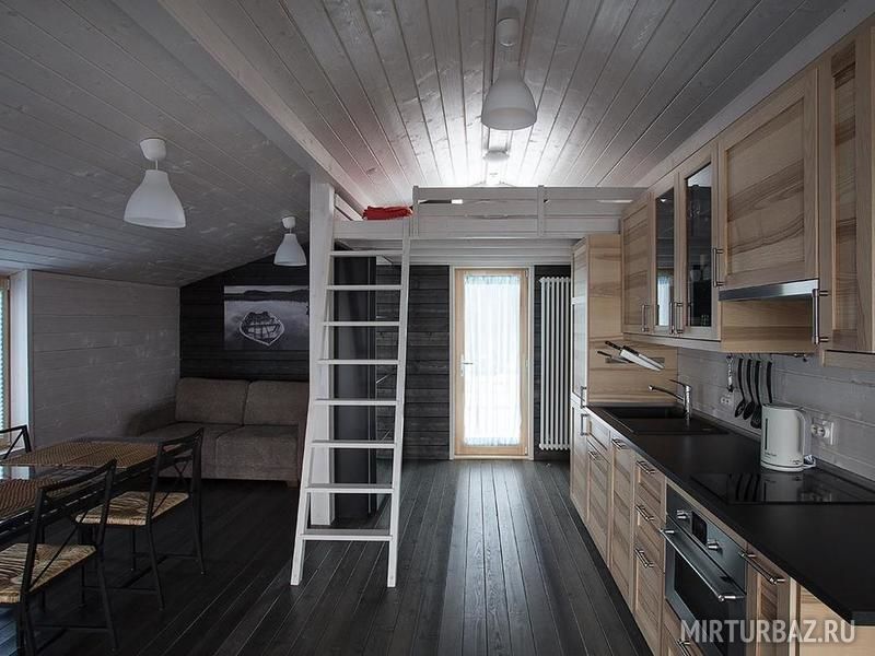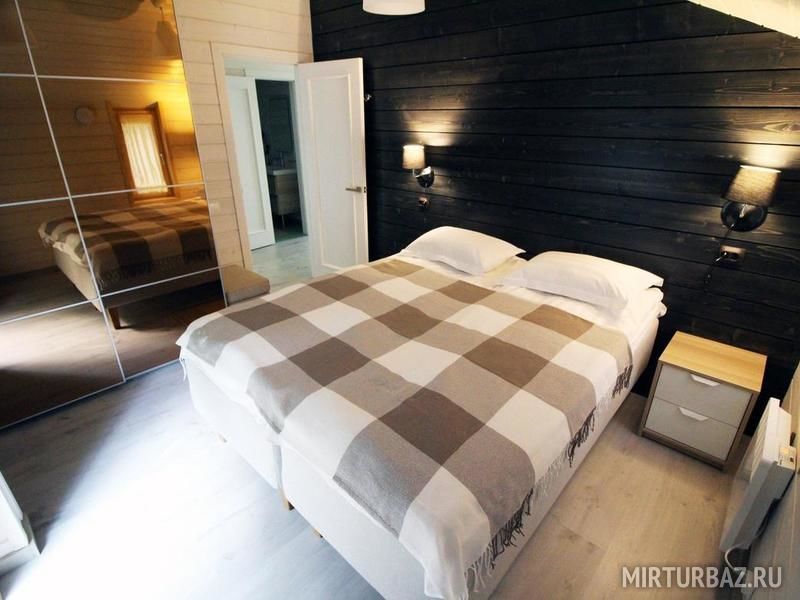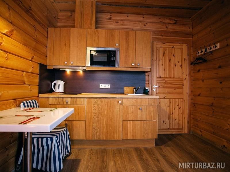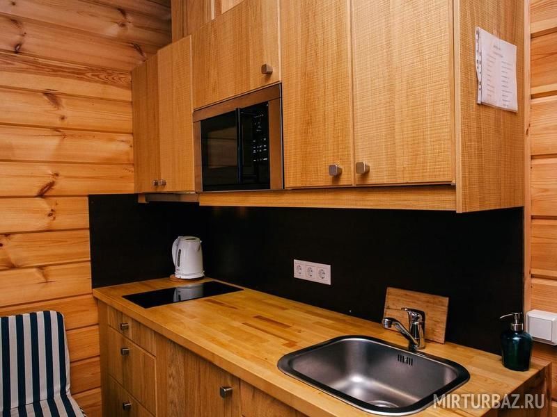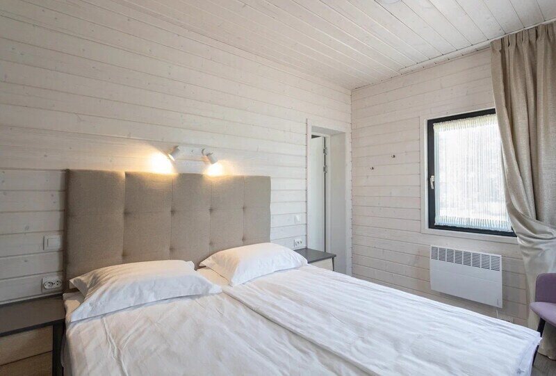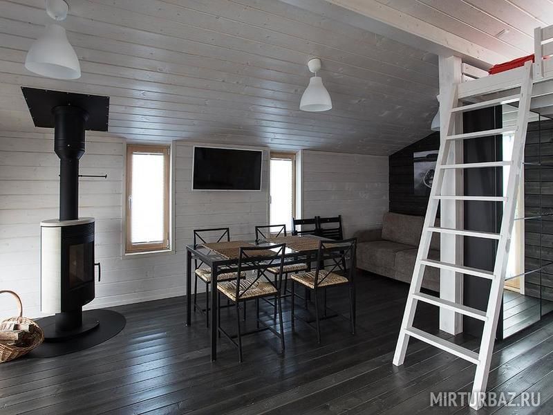 Останавливались в коттедже Бунгало. Просторный и уютный домик для семьи, парковка прям у домика, большая кухня-гостиная со всем необходимым и камином(с запасом дров), в ванной стиральная машина, отдельная спальня для взрослых и кровать под потолком для детей. На веранде качалка и удобные стулья с видом на марину. Территория небольшая, но есть где погулять, рядом с домиками мангальная зона, а совсем рядом веревочный парк с тролеем и ферма с контактным зоопарком и лошадьми. С чт. по вск. работает ресторан, из которого можно заказать доставку в номер или же посидеть там, ресторан дог френдли.
