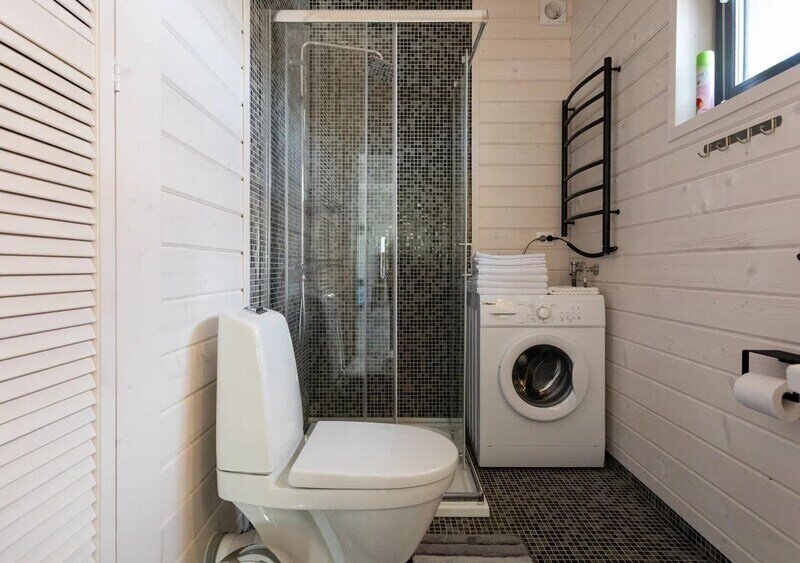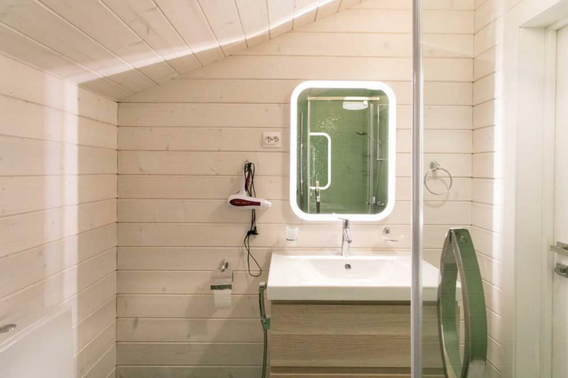 В каждом «Бунгало» есть ванная комната со стиральной машиной и оснащенная современной техникой кухня. Холодильник, плита, вытяжка, электрочайник, духовка с функцией микроволновой печи, а также утюг, сушилка для белья и гладильная доска. Есть все необходимое для комфортного проживания.