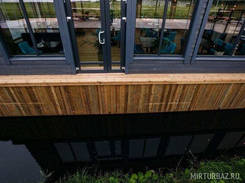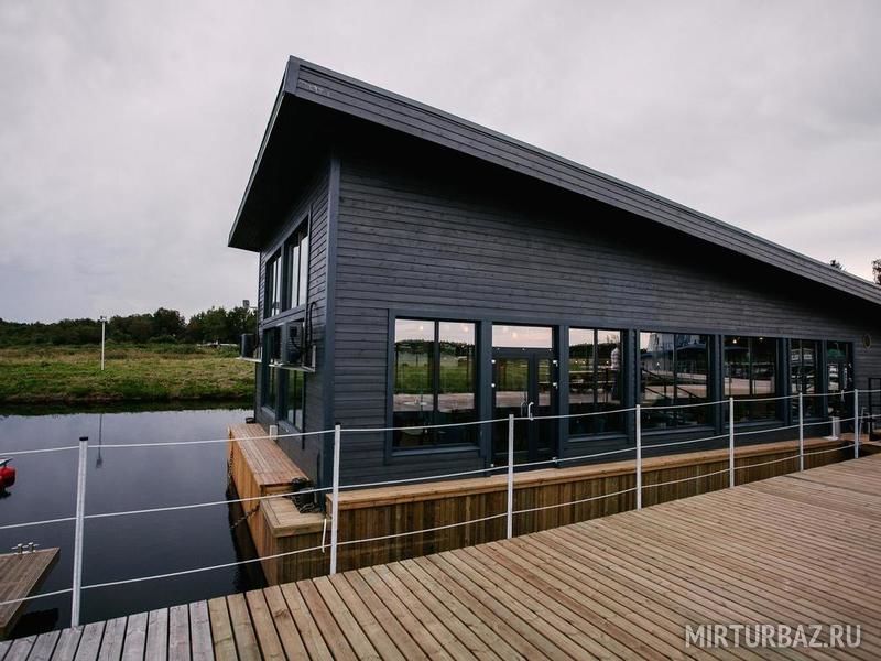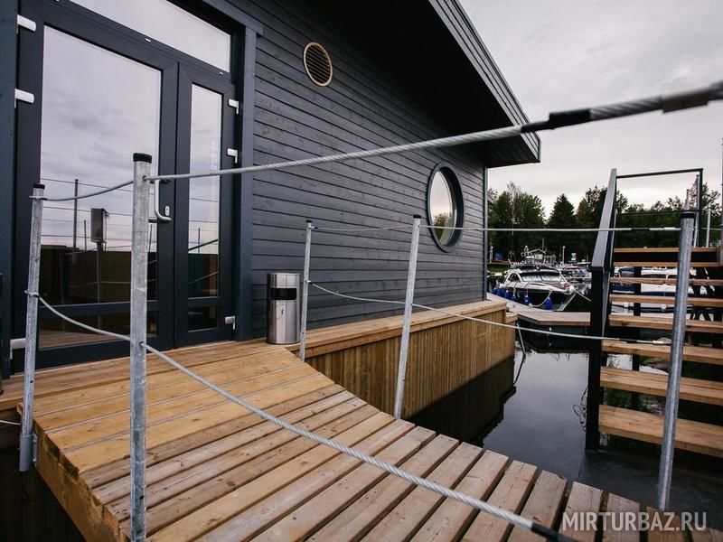 Видовые террасы дома с летней мебелью открывают великолепный вид на яхт-клуб и Ладогу.