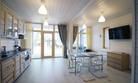 В доме есть всё для комфортного проживания: две спальные комнаты, видовые террасы, душевая, ванная комната, уютная гостиная, с раскладным диваном и обеденным столом. Кухня полностью оснащена современной техникой и посудой. В коттедже есть стиральная и посудомоечная машины, фены для волос, утюг, сушилка для белья и гладильная доска.