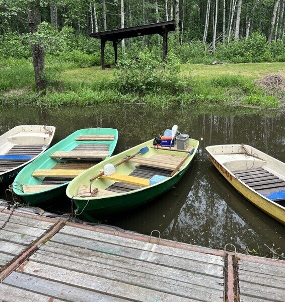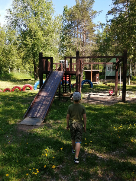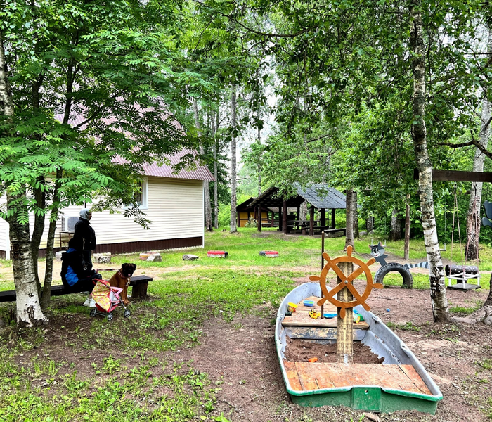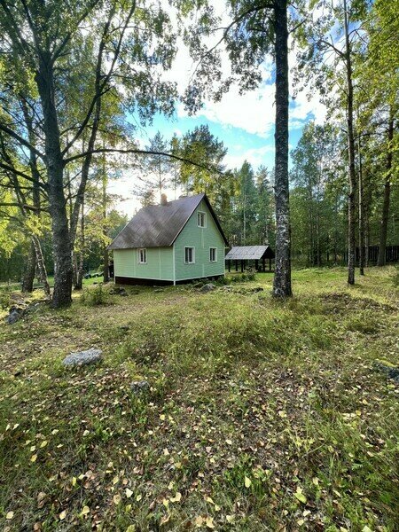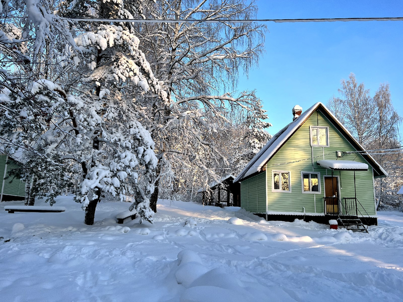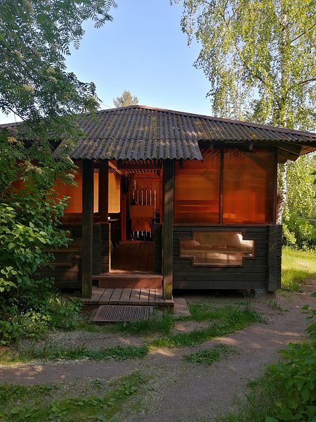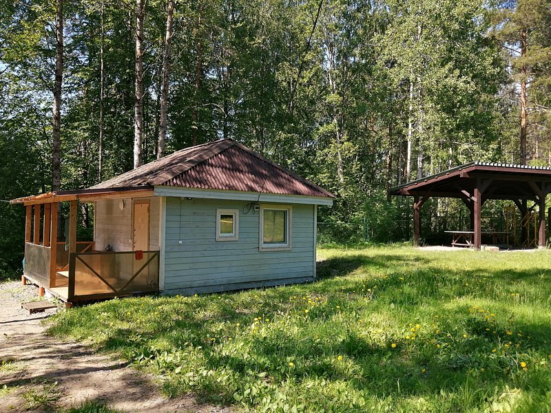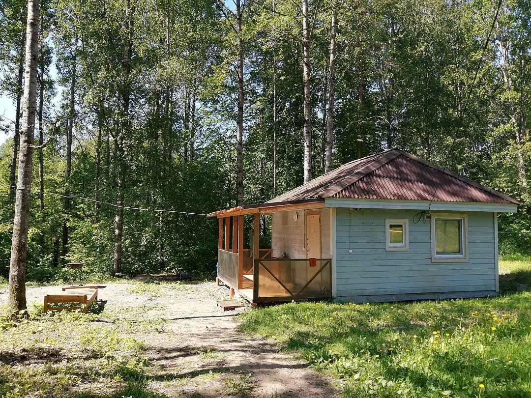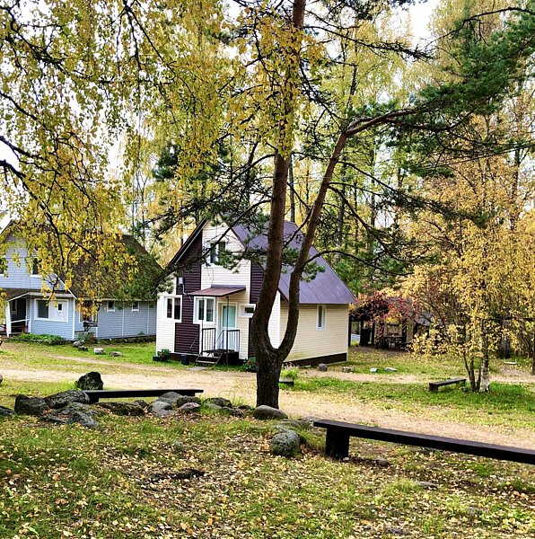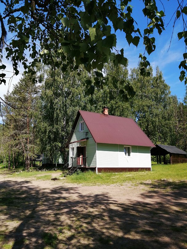 Этот коттедж находится достаточно далеко от других коттеджей на базе, ближе всего к бани и озеру.