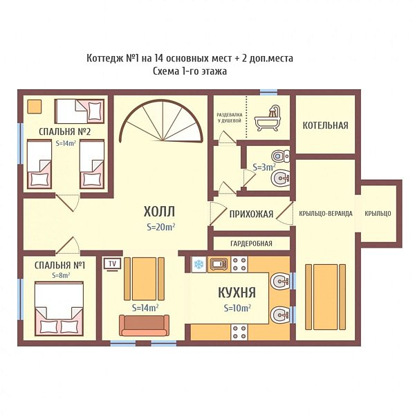 150 м2 · 14-и местный дом + 2 доп. места